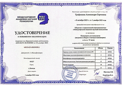 | Психолог | Индивидуальная очная/онлайн консультация | 50 минут |